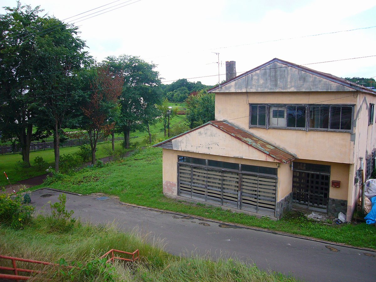 商店も兼ねた鉄道官舎と思わしき廃屋が、かつては気動車を、今は遊歩道を歩く人を見守る。