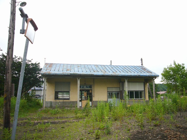 ふと振り返ると駅舎だけが一人がんばっているように見える。