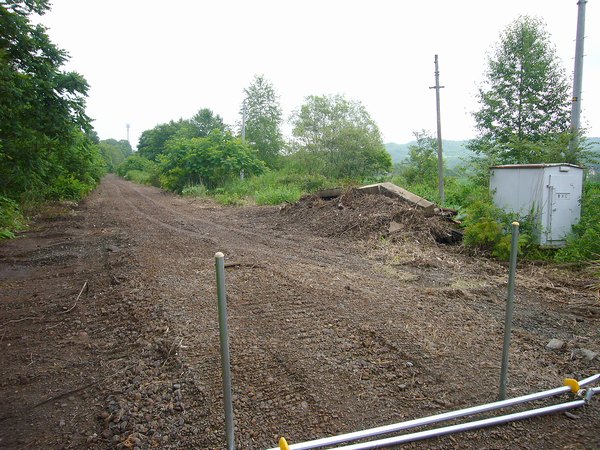 元の踏切を挟んだ反対側には、積み上げられた枕木に囲まれて、