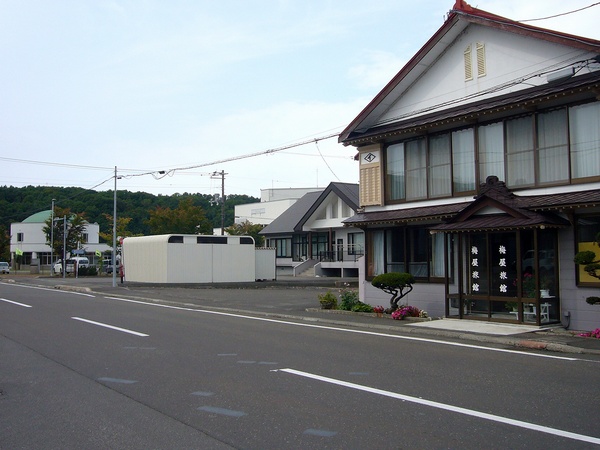 整然と区切られた町並みの駅前通りの跡、ここにも駅前旅館が。