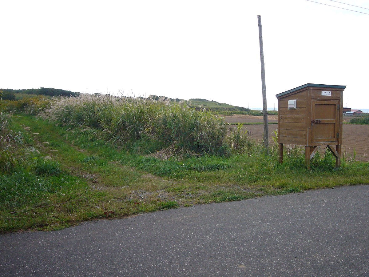 踏切の脇に相当する位置の木製の、ゴミ入れと思われる構造物が、駅舎にも重なって見えた。
