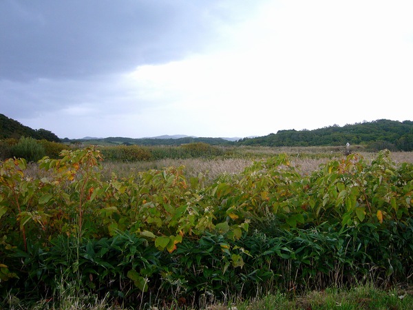 背の高いススキに阻まれ、駅へのアプローチの道を見つけられず。