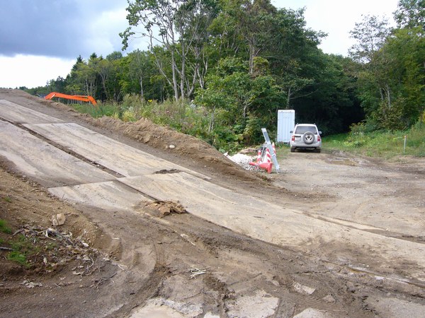 右側に消えていく路盤跡を圧迫するように、おそらく豊幌バイパスの延長工事が進む。