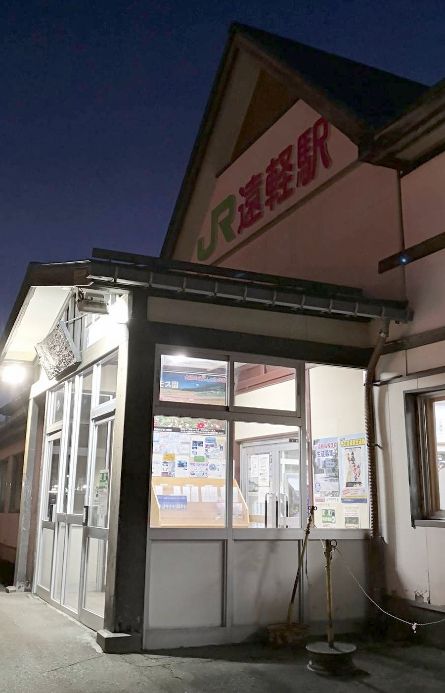開駅から100年を超えた風格のあるたたずまい、駅舎が夕空の下で静かに輝いている。