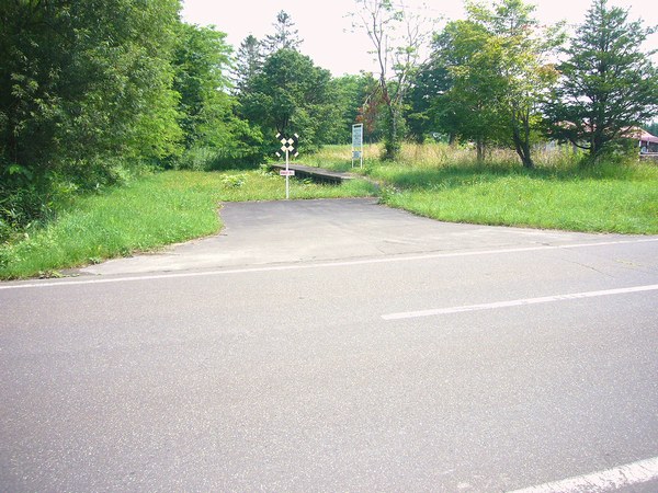 中湧別側の片方は駅名表示板もありモニュメント化されているが、興部側の相棒は道の向こうで藪に埋もれていた。