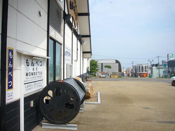 オホーツク氷紋の駅の建物の南面にこじんまりと残ったモニュメントを撮っていたら、
