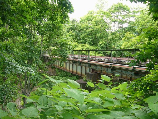 駅跡一帯の街路からちょっと離れたところに、ガーター橋が藪の中に静かに佇んでいた。