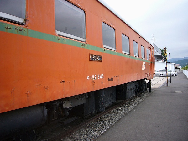 バスターミナルの裏手に、2両のキハ22が綺麗に並んでいる。