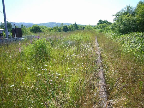 情緒のあった駅舎の跡には、携帯電話のアンテナ基地。夏の路盤跡には草が生い茂り、ホームも埋もれている。