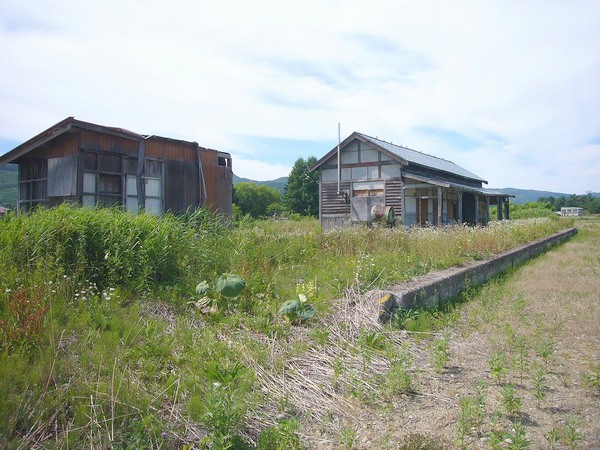 やや大きめの駅舎がここもかろうじて倉庫として残っている。