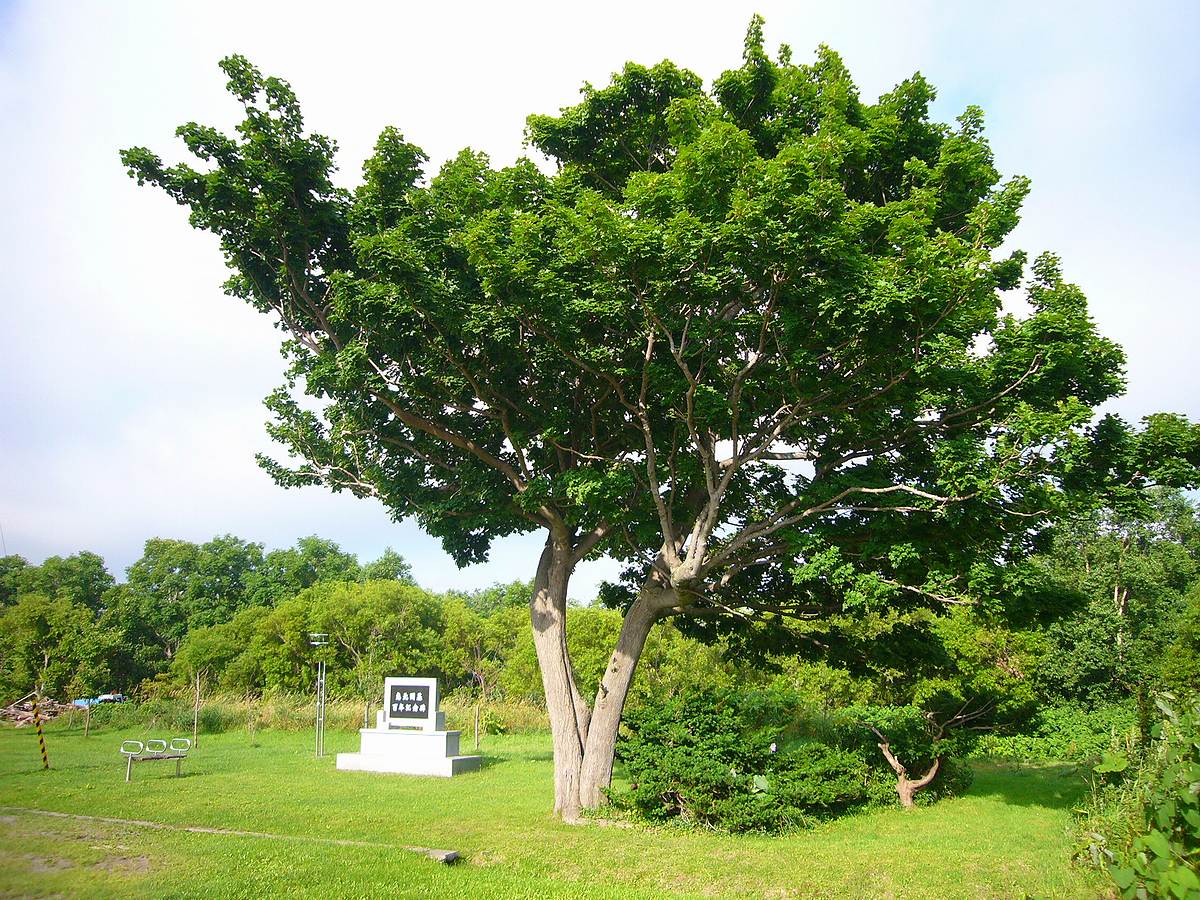 開業と同時に植樹されたイタヤカエデの樹が、鉄道が消えた今も大きく茂る。