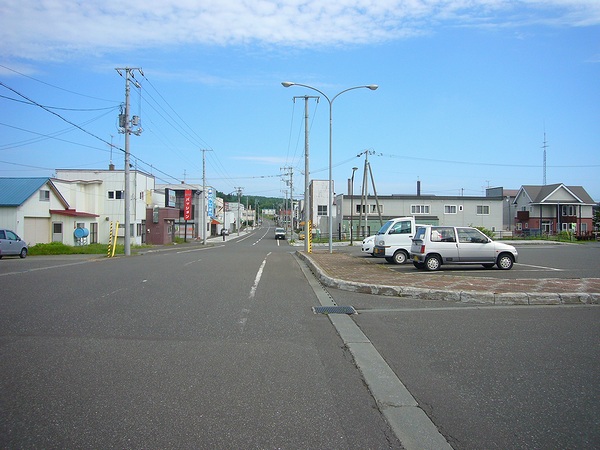 建物の前から、1〜2名の客しか乗っていないバスがわびしげに走り去っていく。