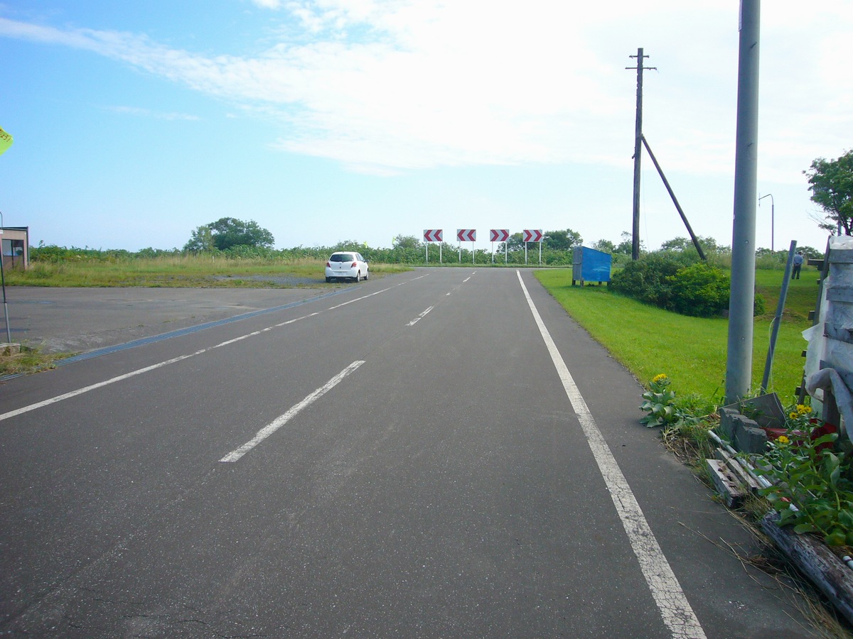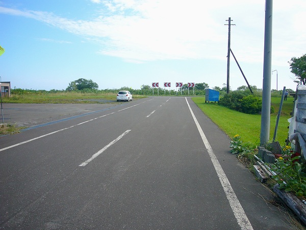 寂れてもやはり駅前通りの趣がある道を駅のほうへ歩いていくと、そこから突然、道道の現代的な舗装道路が前を横切る光景に切り替わる。