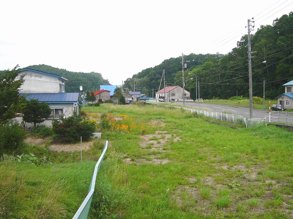 旧天北線、小頓別駅跡。 かつての路盤は川に変わり、かつての川は埋め立てられた。