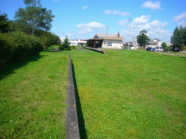 かつてバラストとレールで茶色だった線路跡がまるで公園のように草の緑に代わった光景がすごく印象的。