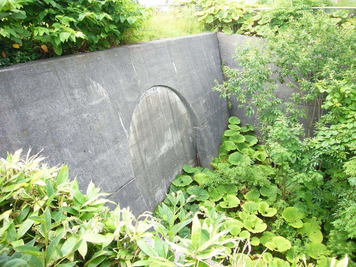 比較的新しめのコンクリート構造体が緑の中に侘しく沈んでいた。