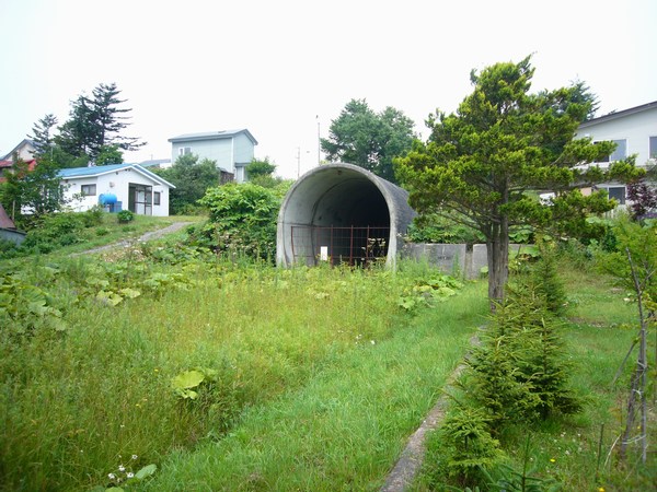 少し高台の小学校の敷地の下をくぐる325メートルのトンネル跡、ほかの多くの遺構同様に一度も汽車を通すことなく眠りにつく。