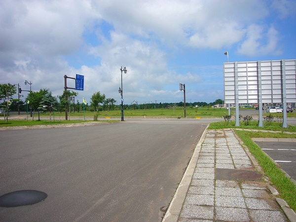 直線的な区画整理で広々とした駐車場に立派なバスターミナル。